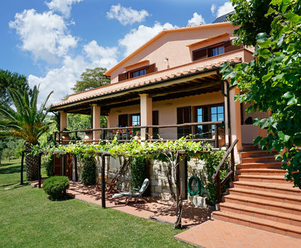 With approximately 200m², Villetta offers ample space for up to 11 guests. The living rooms on the patio level are organized around the kitchen with its welcoming kitchen table and open to the surrounding patio, which provides magnificent views over horse pastures and the Maremma hills up to the sea.
